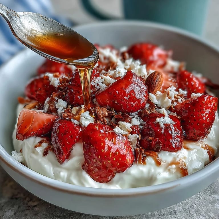 This recipe celebrates the essence of fresh strawberries paired with thick Greek yogurt, creating a delightful contrast in textures and flavors. The honey and nuts add a hint of sweetness and crunch, while optional garnishes like fresh mint and granola enhance complexity and visual appeal. Whether served warm or chilled, this bowl invites you to savor each spoonful with a sense of simple indulgence.