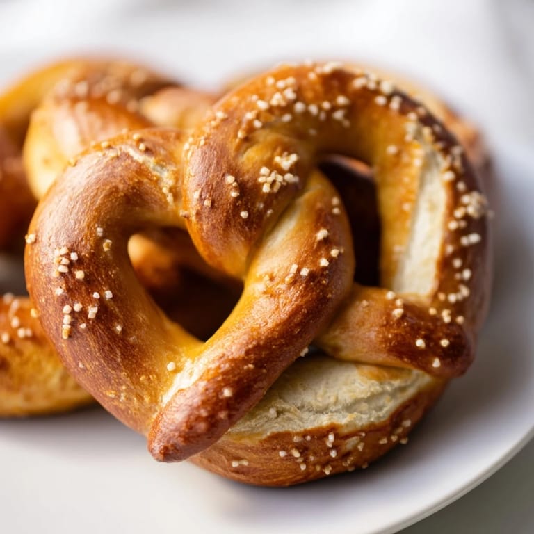 Save There's nothing quite like the aroma of freshly baked soft pretzels wafting from the oven. This recipe guides you through creating those iconic, large, golden-brown twisted treats with a perfectly tender and chewy crumb. Finished with a generous sprinkle of coarse salt, they're the ultimate comfort snack, especially when served warm with a side of tangy mustard.